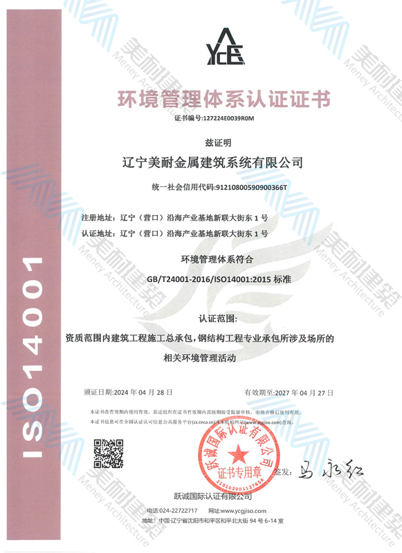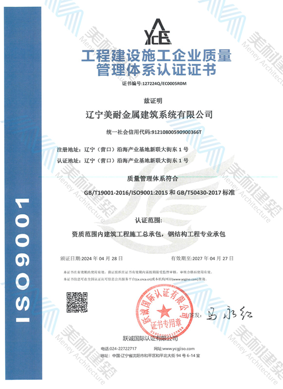 遼寧美耐金屬建筑系統(tǒng)有限公司位于遼寧(營口)沿海產(chǎn)業(yè)基地,專注于預(yù)制金屬建筑系統(tǒng)領(lǐng)域,是一家集工業(yè)建筑設(shè)計(jì)、制作、施工及相關(guān)的技術(shù)咨詢與服務(wù)為一體的綜合性服務(wù)企業(yè)。作為國家鋼結(jié)構(gòu)協(xié)會會員、中國建筑金屬結(jié)構(gòu)協(xié)會會員單位與國家高新技術(shù)企業(yè),美耐建筑集建筑工程施工總承包、鋼結(jié)構(gòu)工程專業(yè)承包等多種資質(zhì)于一身,并擁有22項(xiàng)鋼結(jié)構(gòu)建筑領(lǐng)域?qū)@?項(xiàng)軟件著作權(quán)。